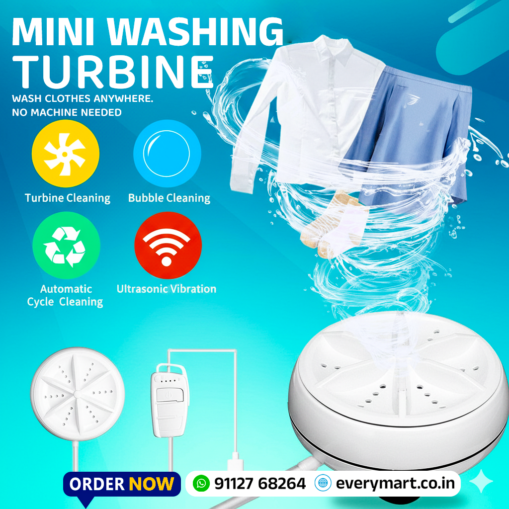 A mini washing turbine is a compact, portable mini-washer that helps you wash small loads of laundry (like socks, underwear, towels, baby clothes, masks, etc.) without needing a full-size washing machine. It’s especially useful for travel, dorms, camping, small apartments, or quick laundry needs